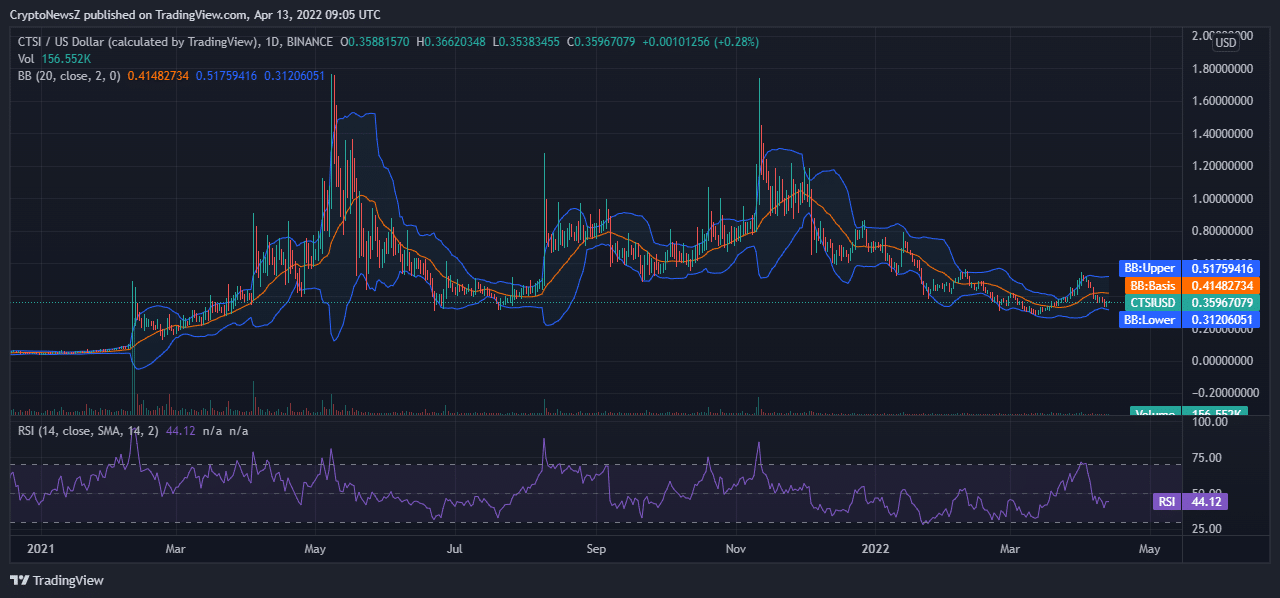 The current price of Cartesi (CTSI) is $0.3599. This CTSI price point can be used by potential investors who plan to hold the CTSI token for the long term. Also, the 24 hours trading volume is $14,245,935.57 and the total supply is 1,000,000,000 CTSI. For now, our advice is to stay out of the CTSI token unless you have already invested in the Cartesi (CTSI). Also, investors should have a realistic expectation of holding the token for a minimum of three years to capitalize on the movement of the CTSI price spikes ultimately. Although the resistance level can be established, it might not be easy to trade them as the crypto and blockchain industry tokens don’t seem to follow a particular pattern. Currently, there is a slight correction seen in the Cartesi coin which might again change resulting in rise in the price in the near future.